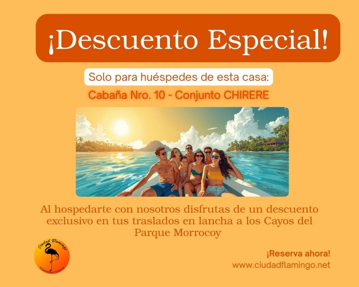 ● Al hospedarte con nosotros obtienes descuento en tus viajes de visita a los Cayos de Morrocoy.