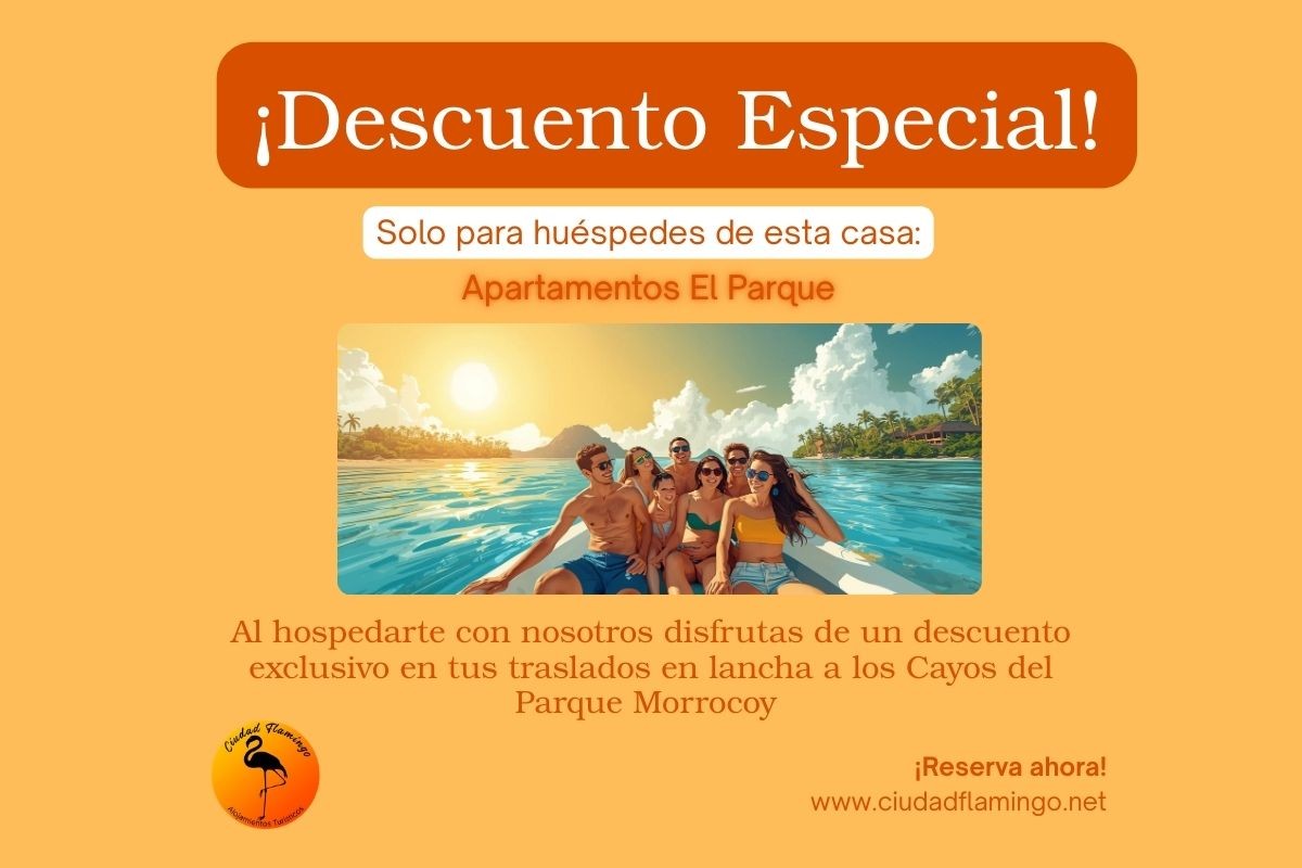 Por ser nuestro huésped, disfruta de un 30% de descuento en traslados a los cayos. Te conectamos con nuestro capitán de confianza para tus paseos a los Cayos del Parque Morrocoy, al mejor precio y con total seguridad.