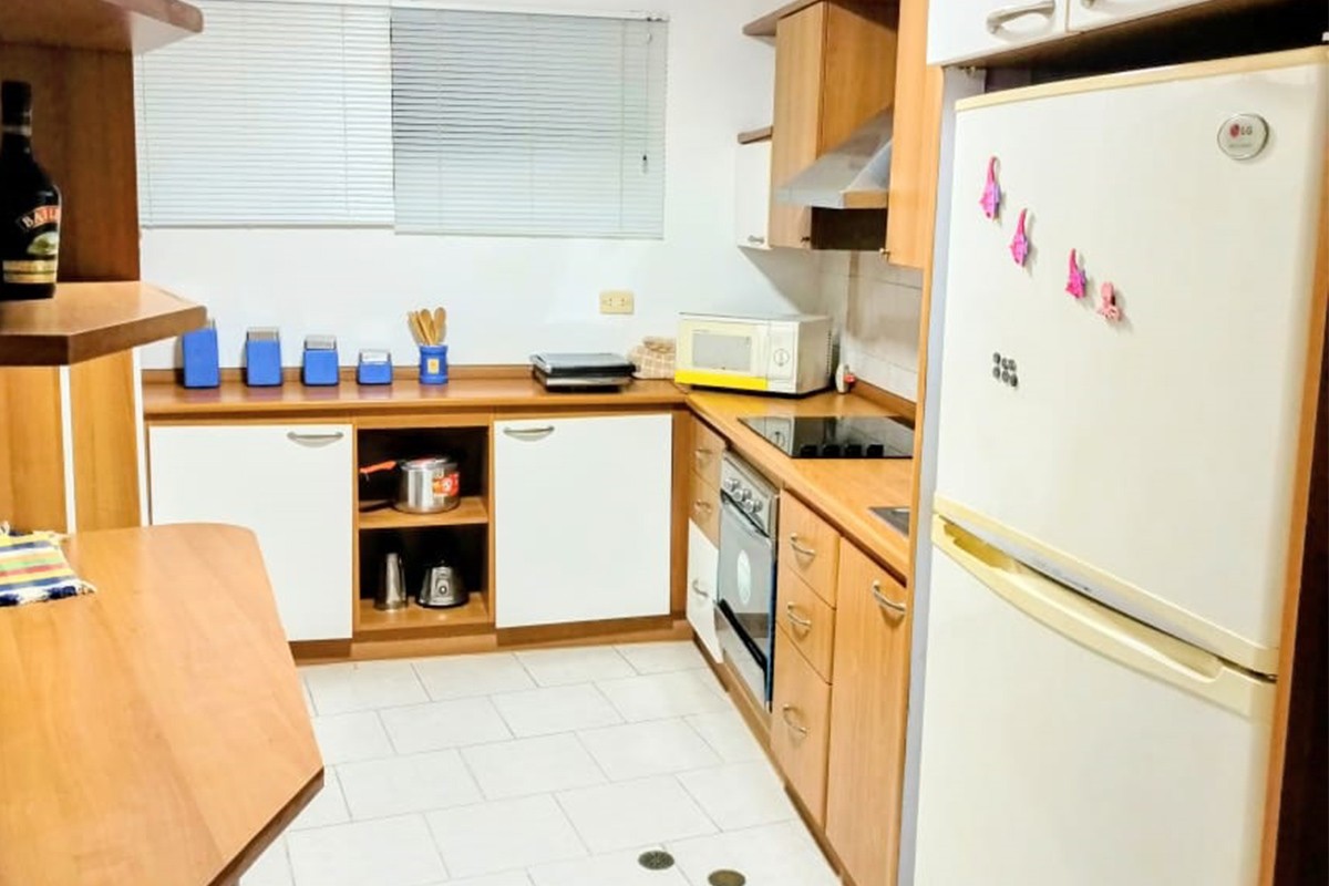 - Cocina equipada (utensilios, ollas, sartenes, cubiertos, platos, vasos)