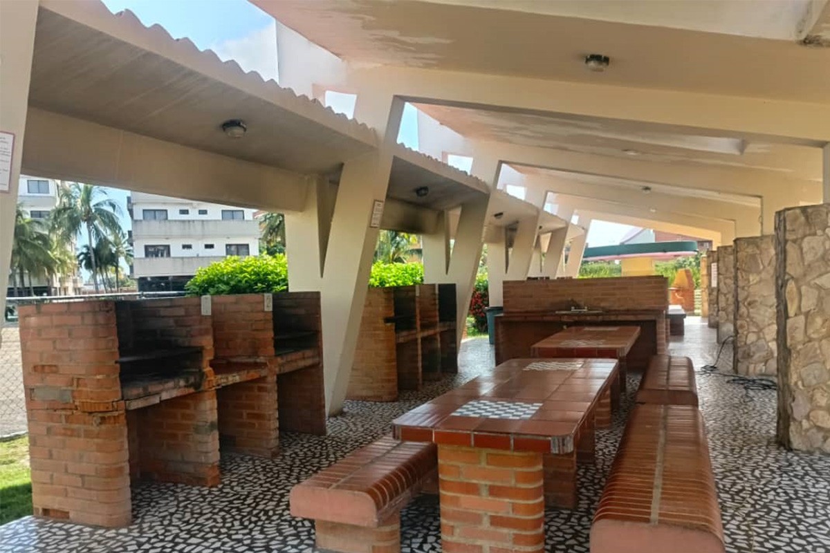 - Área de parrileras con mesones y bancos.